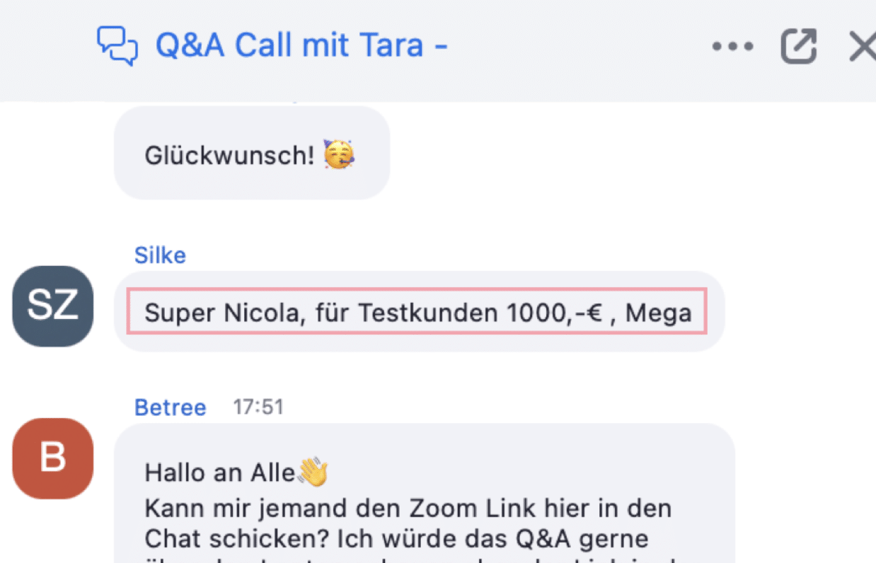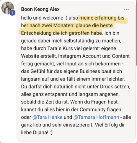 - der superschnelle Support und Unterstützung bei Fragen in den Live Zoom Calls